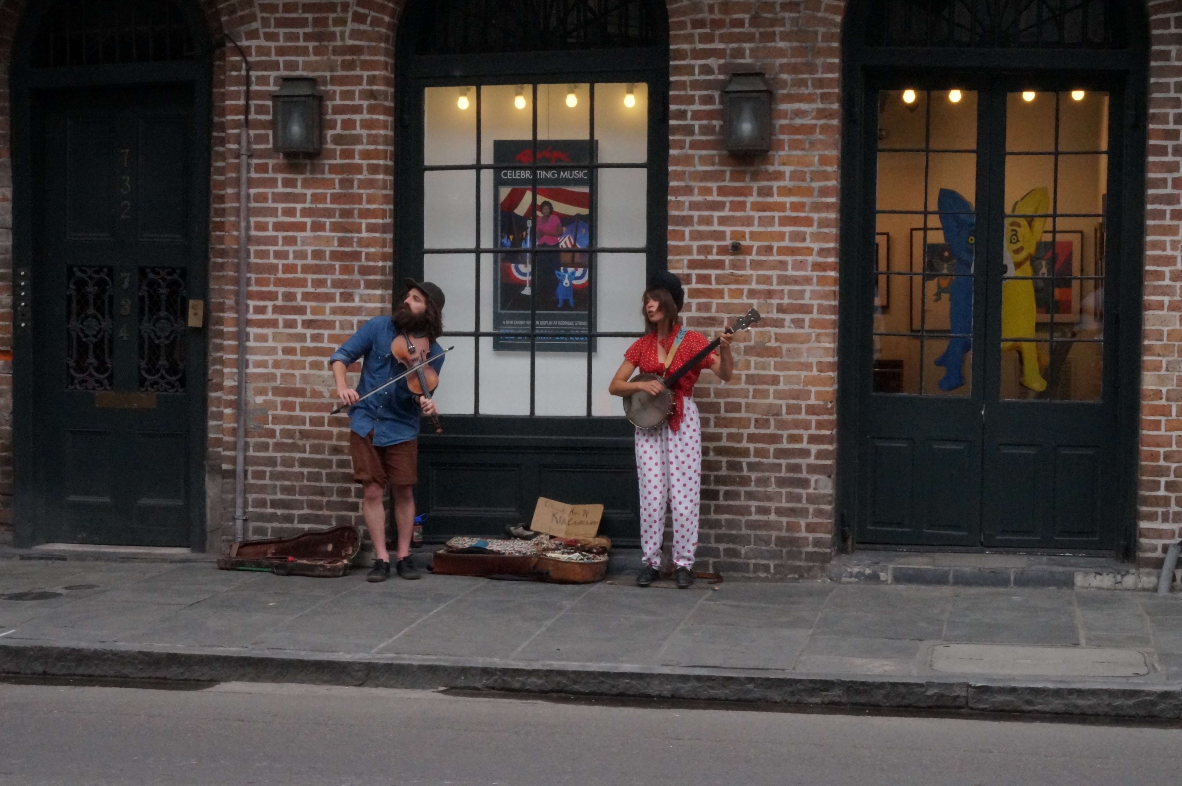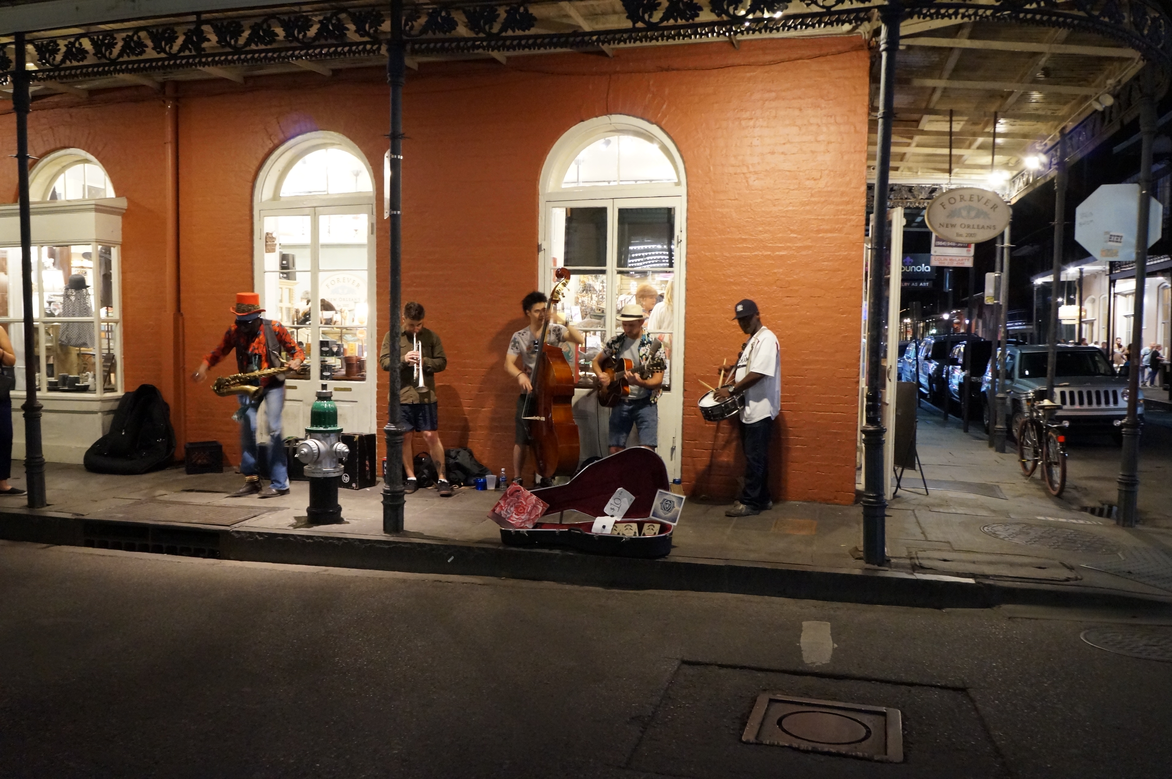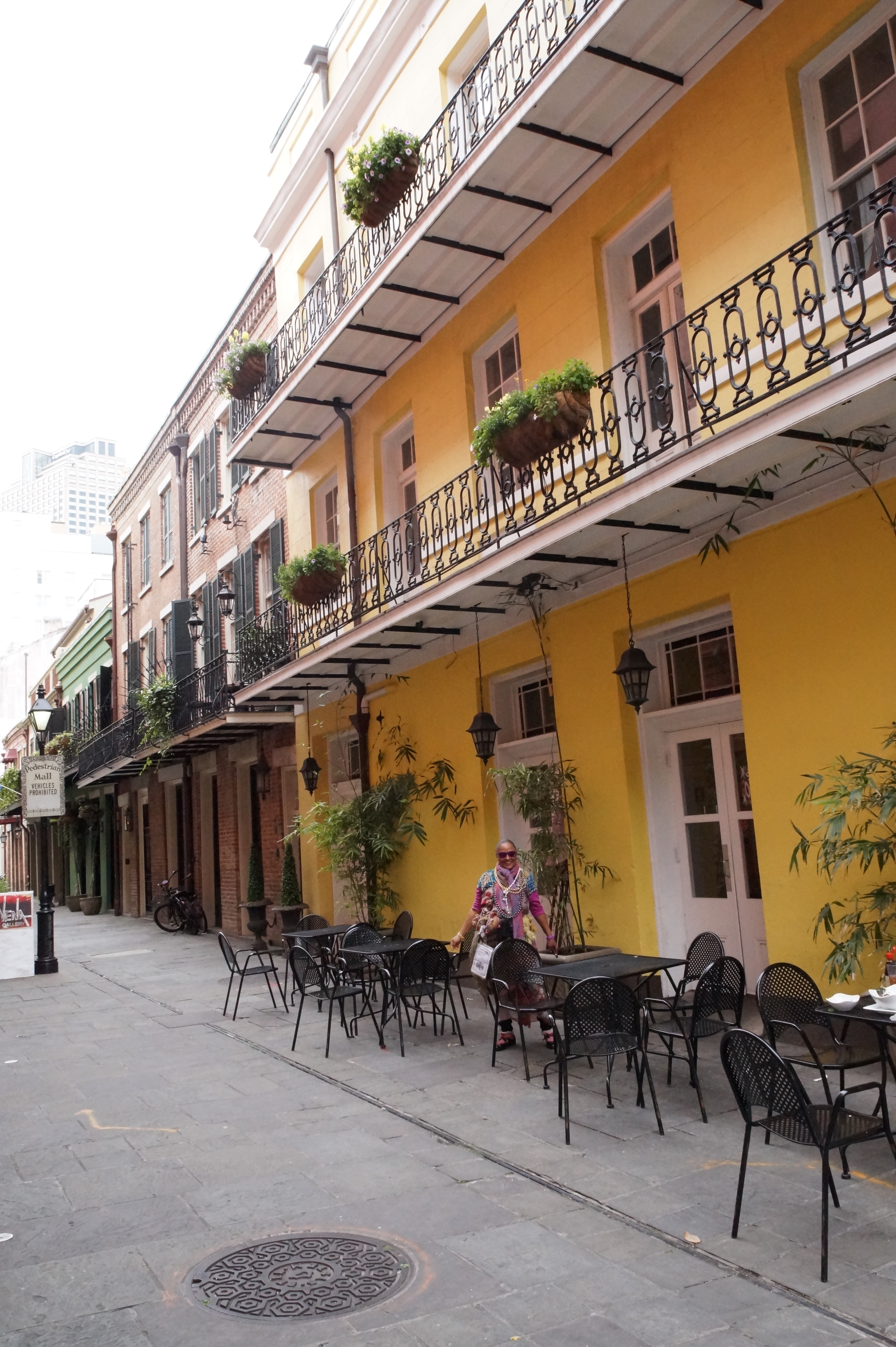The elegant scrollwork of the wrought iron balustrades and columns, the long galleries where residents while away the time watching their community, or play music makes the French Quarter magical to me. The characters of the French Quarter are colourful and friendly, were happily willing to pose for photos for me. The street performers and musicians are always around and entertaining to photograph, and with permission, even videotape.